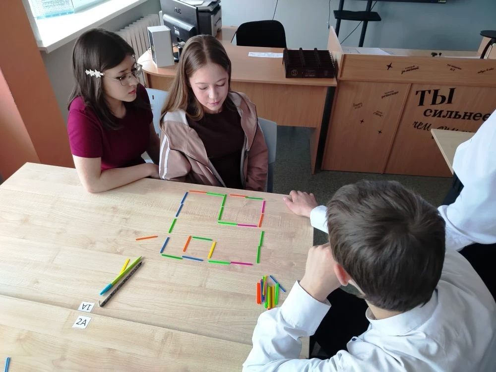 Конкурс был устроен в формате математического квеста: команды получали маршрутные листы и отправлялись по станциям, которые располагались в разных кабинетах. На каждой точке — свои задания, на выполнение которых давалось 7–8 минут. Станции конкурса: — «Шифровальная» — тут нужно было проявить смекалку и разгадать тексты с помощью числовых кодов и координатной плоскости. — «Геометрическая мозаика» — задачи на разрезание, конструирование и вычисление площадей фигур на клетчатой бумаге. — «Логическая» — классические головоломки: взвешивания, переливания, истинностные задачи и другие логические ребусы. — «Математика в профессии» — задания на функциональную грамотность: покупки, тарифы, расходы — всё, что пригодится в жизни. — «Спичечный тур» — головоломки со спичками: перекладывай, думай, получай верное равенство! — «Чёрный ящик» — угадай математическое понятие или предмет по описанию. В завершение всех ждал блиц-турнир «Математическая карусель» — вопросы на эрудицию: история математики, великие учёные, числа вокруг нас. Здесь важно было не только быстро считать, но и знать интересные факты! Обучающиеся проявили не только отличные знания, но и умение работать в команде, поддерживать друг друга и не теряться в сложных ситуациях. Победа в таком конкурсе — отличный стимул для дальнейшего развития и интереса к математике!